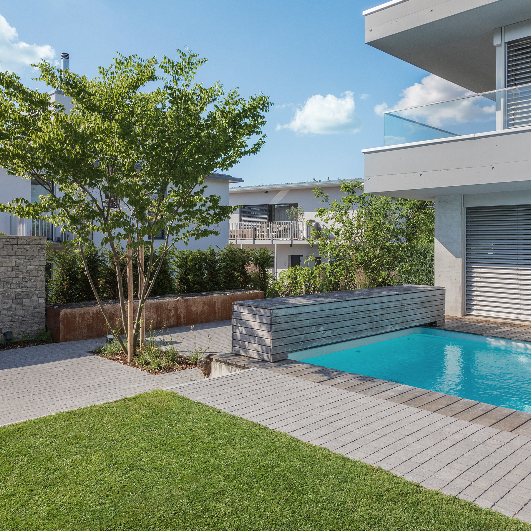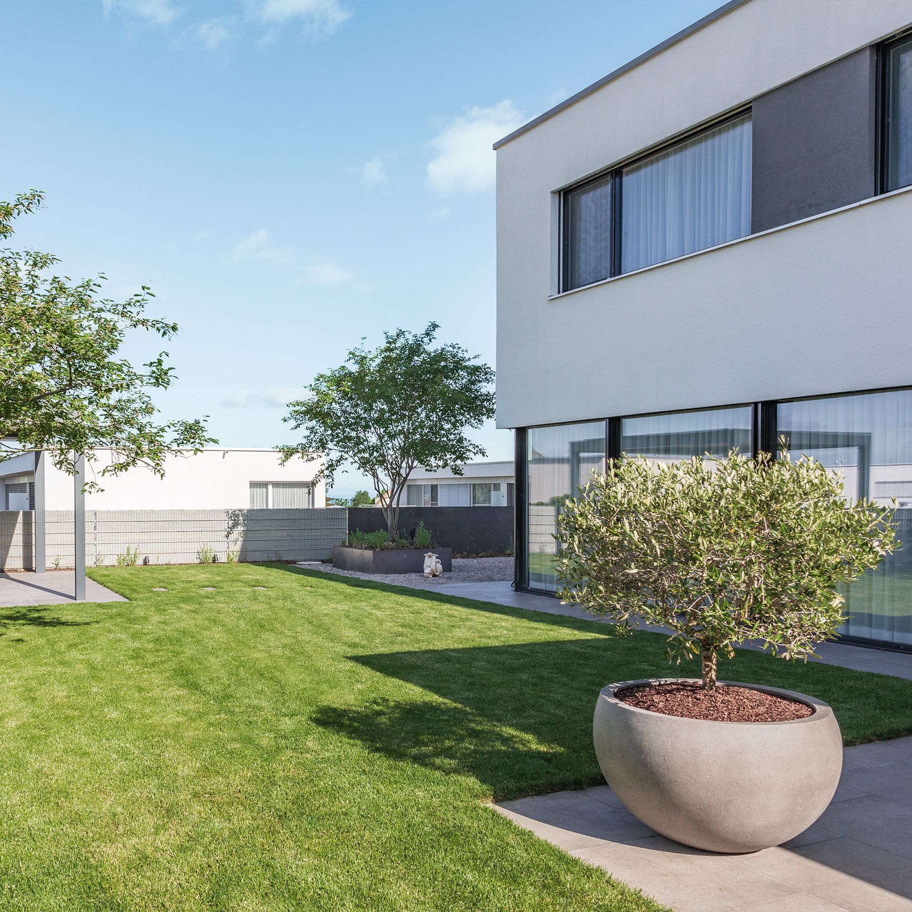 Von wegen «bauen auf der grünen Wiese»: Bei Neubauten bieten sich im Garten Chancen, die weit über das Grün der Pflanzen hinausgehen. Hier zählt die geschickte Kombination von Materialien und Formen – und die professionelle Umsetzung.